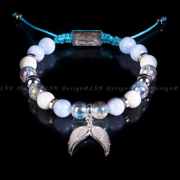 Aqua Aura Kvarc - Kalcedon - Kagyló - Ezüst Hematit - Angyalszárny 925
