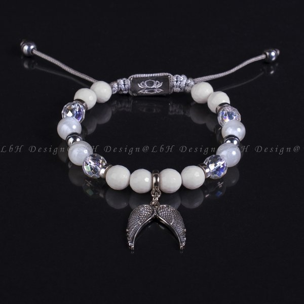 Fazettált Kagyló-Fazettált Aqua Aura kvarc-Holdkő-Ezüst Hematit Angyalszárny 925 Ezüst