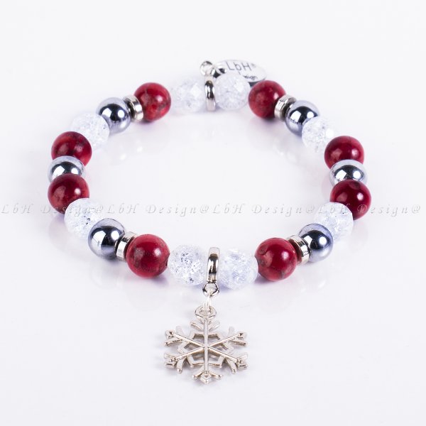 Fazettált Roppantott Hegyikristály-Vörös Howlit-Ezüst Hematit - Ezüst Hópehely