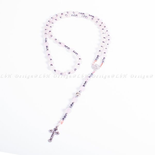 Fazettált Rózsakvarc – Ezüst Hematit – Rózsafüzér 925 Ezüst