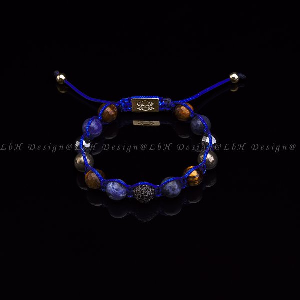 Fazettált Tigrisszem - Szodalit - Pirit - Fazettált Hematit - Privilege 925 "Big Boy" Lótusz Arany