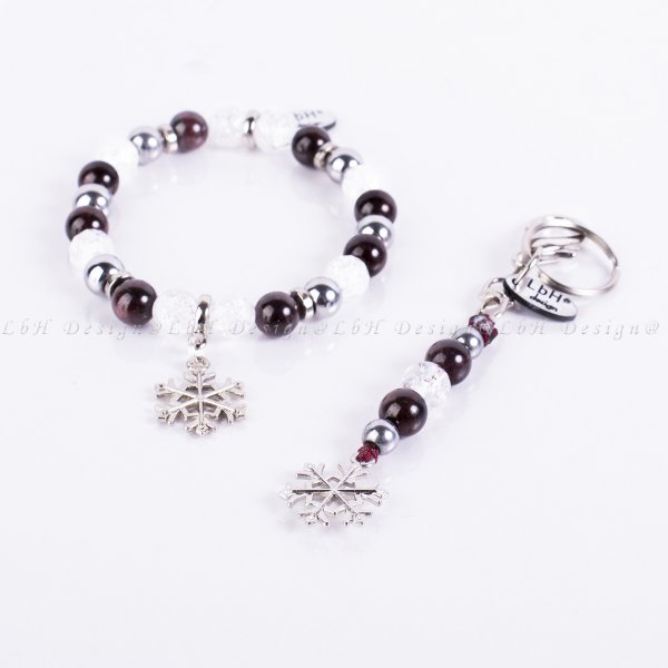 Gránát-Fazettált Roppantott Hegyikristály-Ezüst Hematit - Ezüst Hópehely + Kulcstartó