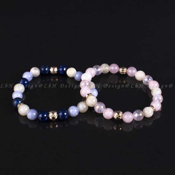 Holdkő-Rózsakvarc-Aqua Aura kvarc / Holdkő-Kalcedon-Lapisz Lazuli Forever 925 Arany Páros Karkötő