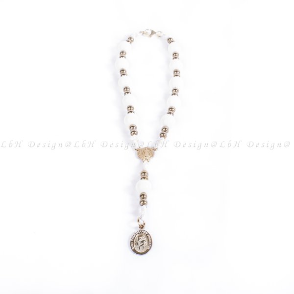Féldrágakő Szent Kristóf rózsafüzér 925-ös ezüst kiegészítővel.