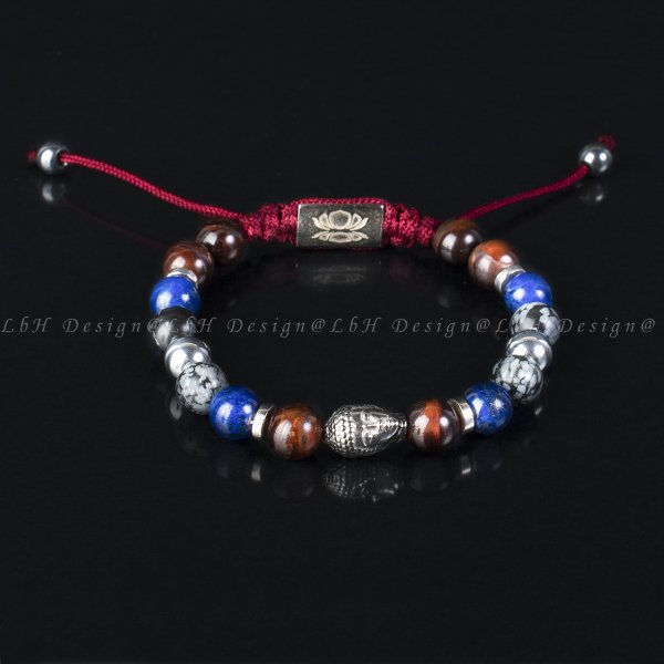 Macskaszem-Hópehely Obszidián-Lápisz Lazuli-Ezüst Hematit Buddha 925 Ezüst