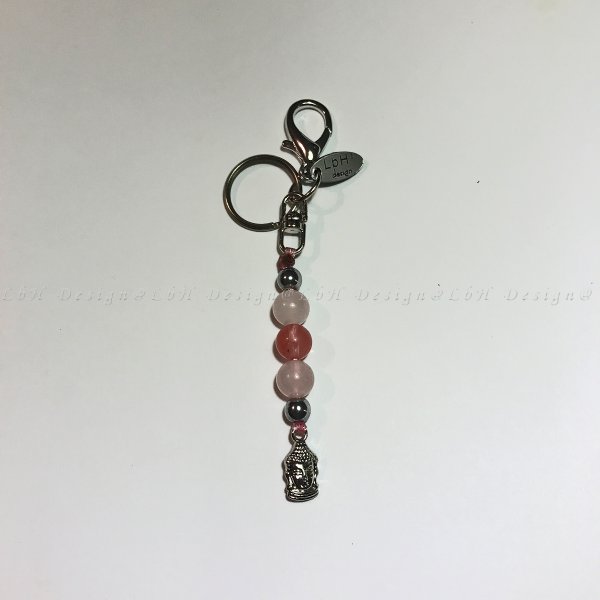 Málna kvarc - Rózsakvarc - Ezüst Hematit - Buddha Kulcstartó