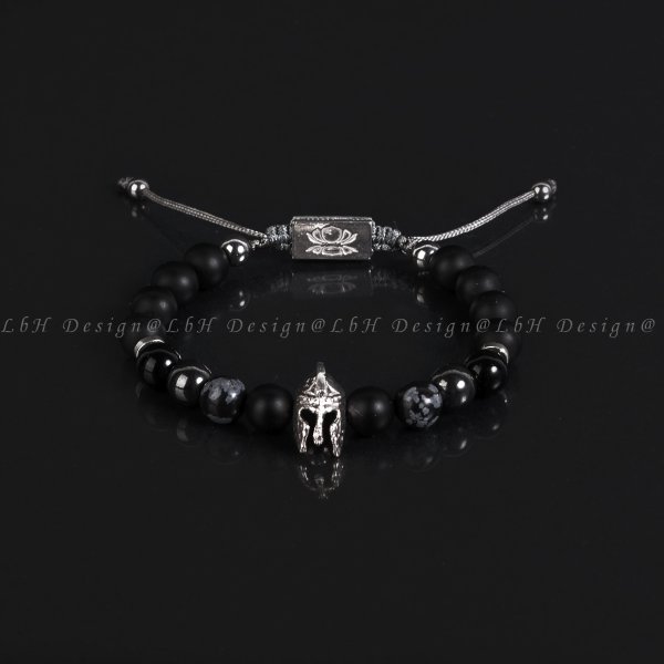 Matt ónix - Ónix - Hematit - Hópehely Obszidián - Ezüst hematit - Achilles Sisak Ezüst 925