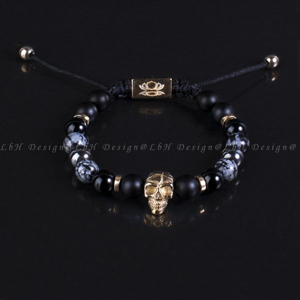 Matt Ónix-Ónix-Hópehely Obszidián-Hematit-Koponya 925 Arany