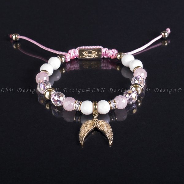 Pirivelege 925 Limitált Angyalszárny - Fazettált Rózsakvarc - Fazettált Kagyló - Fazettált Aqua Aura Kvrac – Arany Hematit