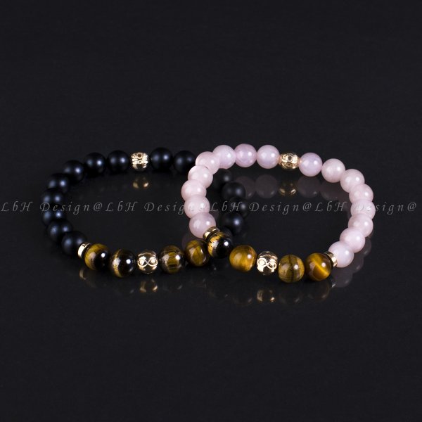 Tigrisszem-Matt Ónix / Tigrisszem-Rózsakvarc Forever 925 Arany Páros Karkötő