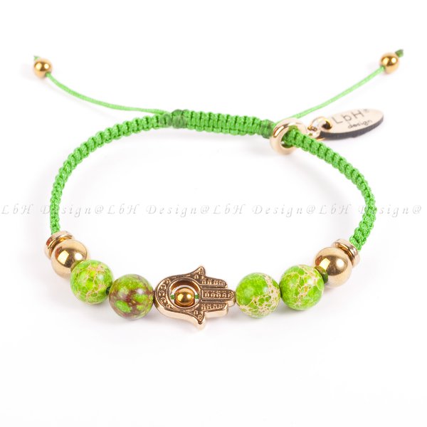ZÖLD TENGERI ÜLEDÉK JASPIS - ARANY HEMATIT - FATIMA KEZE ARANY